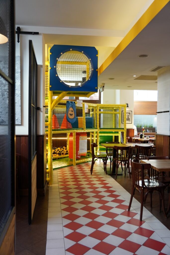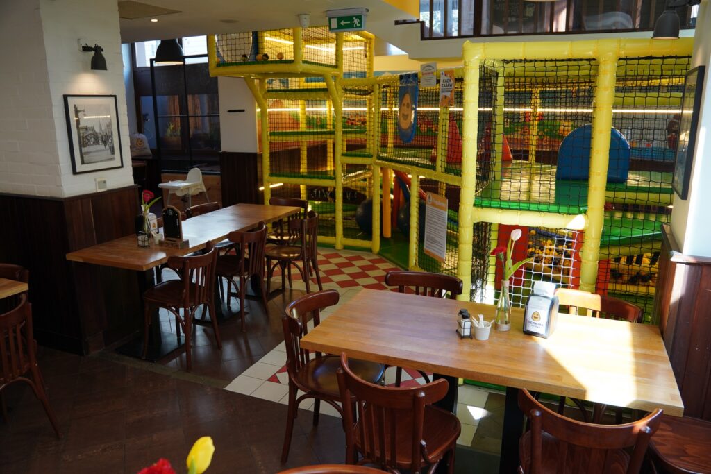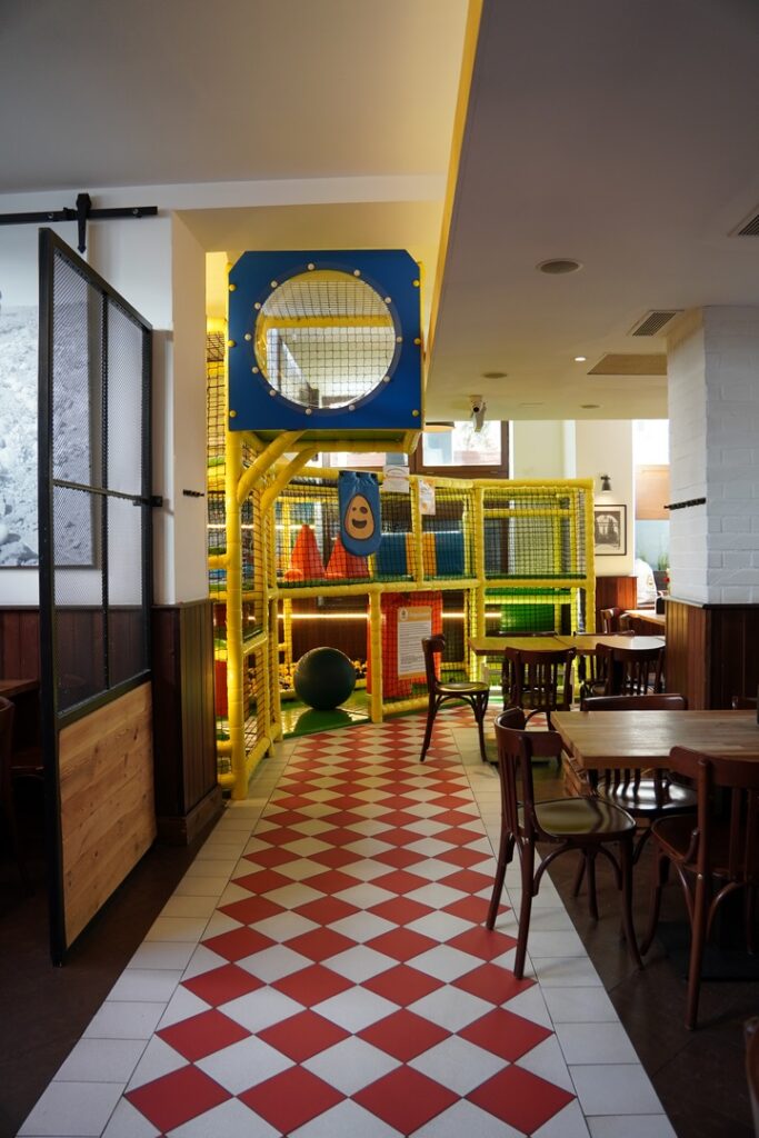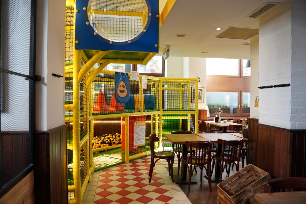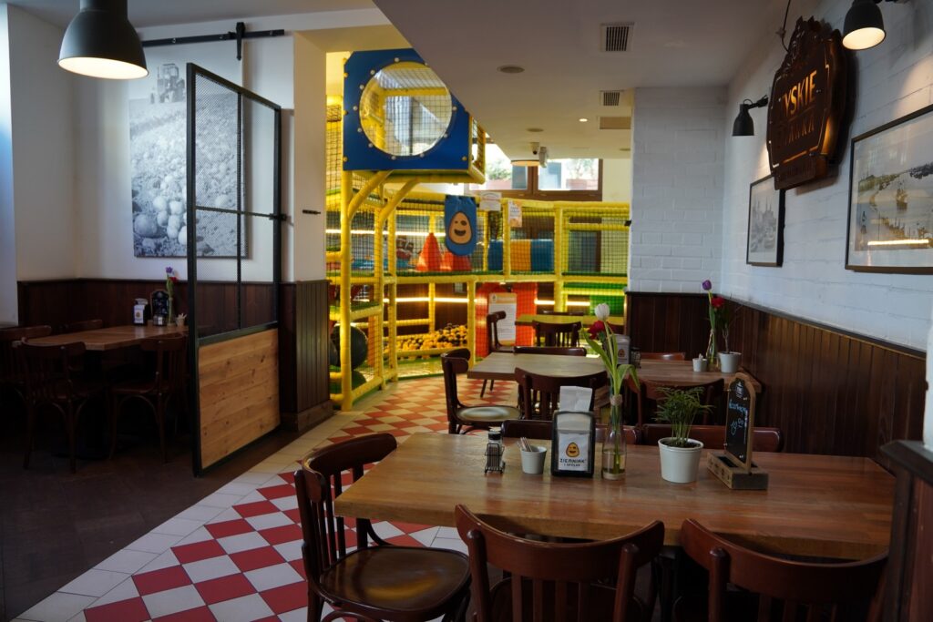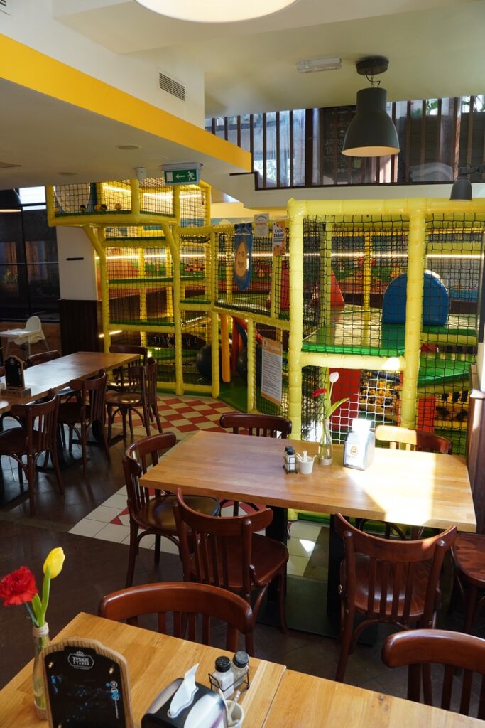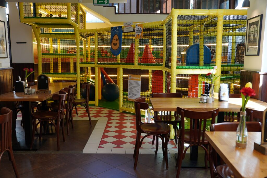 Podobnie jak w restauracji przy ul. Dworcowej lokal posiada naprawdę duży kącik do zabaw dla dzieci, doskonale wyposażone toalety z przewijakiem, a także inne udogodnienia dla rodzin.